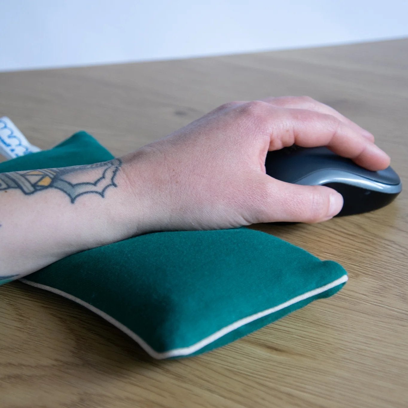Das MMN Augenkissen kann auch als Handgelenkstütze verwendet werden, um Handgelenksproblemen vorzubeugen. Unter das Handgelenk gelegt, während Sie am Computer arbeiten, hält es es in einer neutralen, geraden Position. Unter dem Unterarm platziert, entlastet es Spannungen, die durch lange Bildschirmarbeit verursacht wurden.
